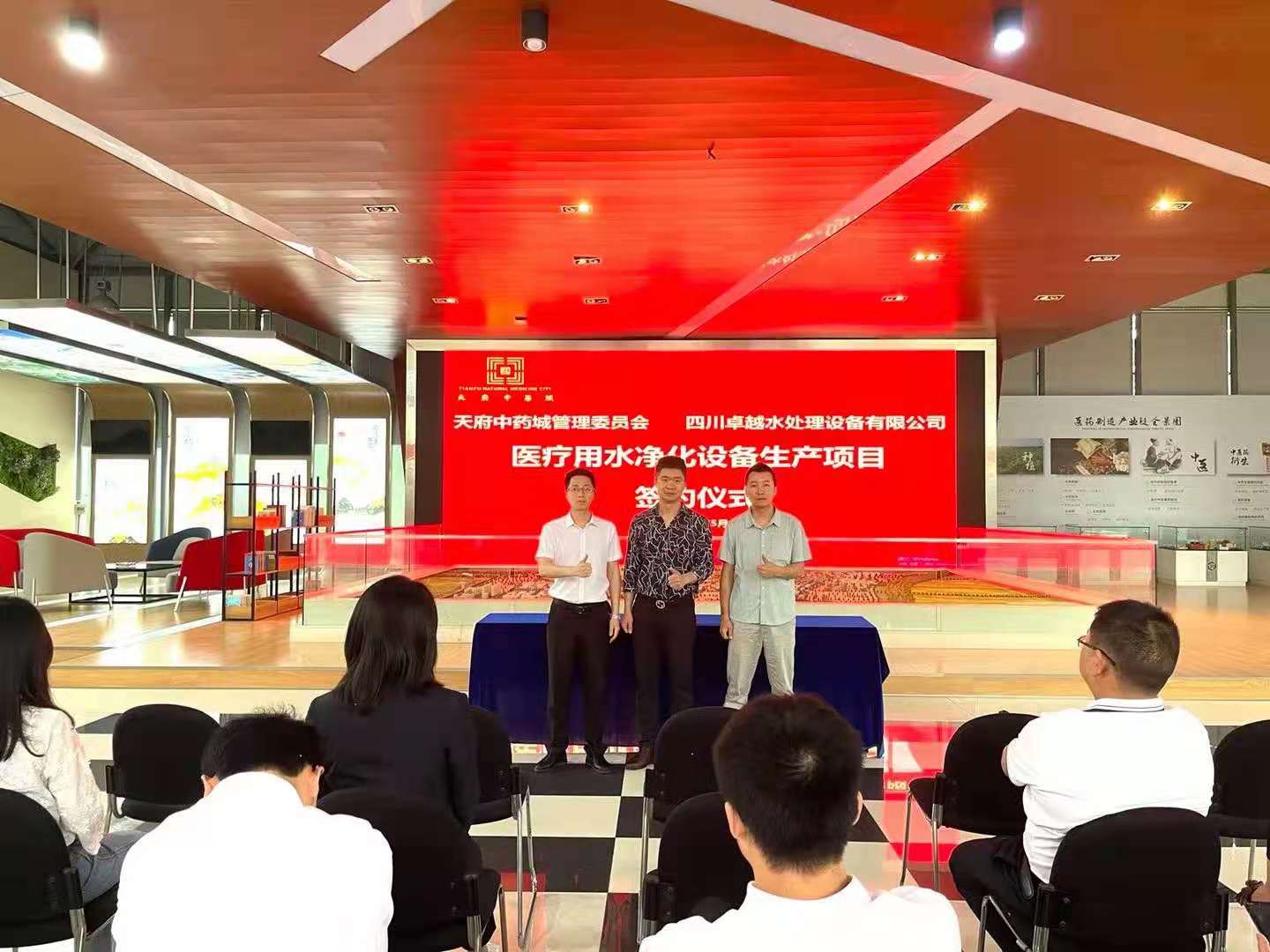 簽約儀式上,四川省彭州工業(yè)開發(fā)區(qū)管理委員會、彭州市中醫(yī)藥管理局和天府中藥城管理委員代表會分別致歡迎辭,表示歡迎四川卓越水處理設(shè)備有限公司入駐天府中醫(yī)院城,祝愿我們能在新的征程路上攜手并進(jìn),開創(chuàng)新的輝煌。隨后四川卓越水處理總經(jīng)理?xiàng)罱ㄉ吓_發(fā)言,他首先感謝彭州市天府中藥城給予的優(yōu)惠政策和新建廠房的幫助,并表示在接下來的日子里,四川卓越將一如既往秉持“ 以信立業(yè)、創(chuàng)新共贏”的經(jīng)營理念,以“專業(yè)專注,用心服務(wù)”作為一貫宗旨,與天府中藥城攜手,加強(qiáng)在醫(yī)療用水凈化設(shè)備等行業(yè)的合作,為醫(yī)療事業(yè)做出自己的貢獻(xiàn)。