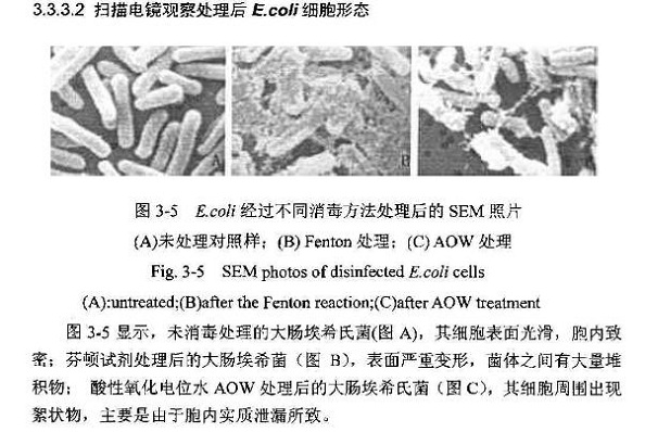 (1)概述:酸性氧化電位水是一種具有高氧化還原電位(ORP),低pH,含低濃度的有效氯的水,它是一種無色透明的液體,具有氯味,其氧化還原電位(ORP)大于或等于1100mV,pH值在2.7以下,有效氯含量一般為25 mg/L~50mg/L。它具有較強的氧化氯和快速殺滅微生物的作用,對各種微生物都有較強的殺滅作用。其具有殺菌速度快、安全可靠、不留殘毒、有利于環(huán)保等特點。