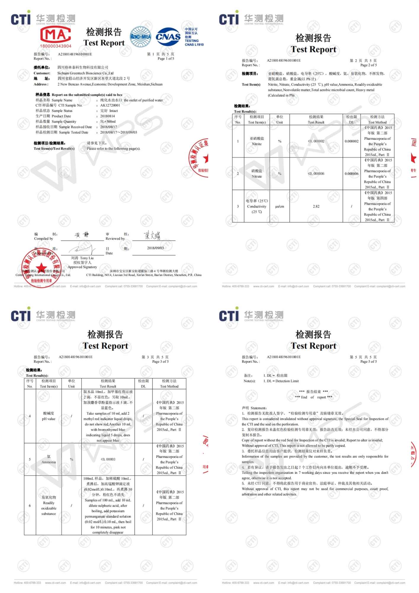 第三方水質檢測資料如下: