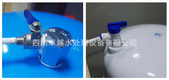 二、在配件箱里找到藍色PE管,然后與不銹鋼三通接頭連接,并連接自來水。藍色PE管另一端連接到純水機源水接口即可。如圖所示:
