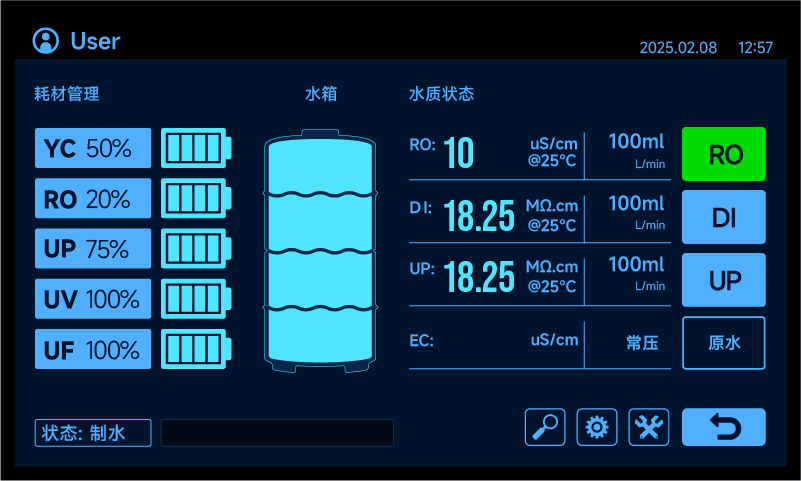 ★更完善的耗材管理,動態(tài)圖標百分比顯示耗材壽命,3色耗材壽命逐級提示功能,具有耗材的使用壽命、處理水量及更換日期統(tǒng)計及設(shè)置功能,耗材帶序列號驗證功能,可儲存查看耗材更換信息。
